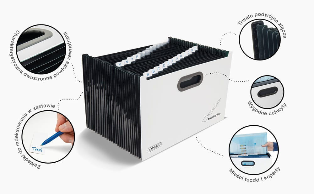 Teczka formatu A4 z 24 przegródkami marki Rapesco.