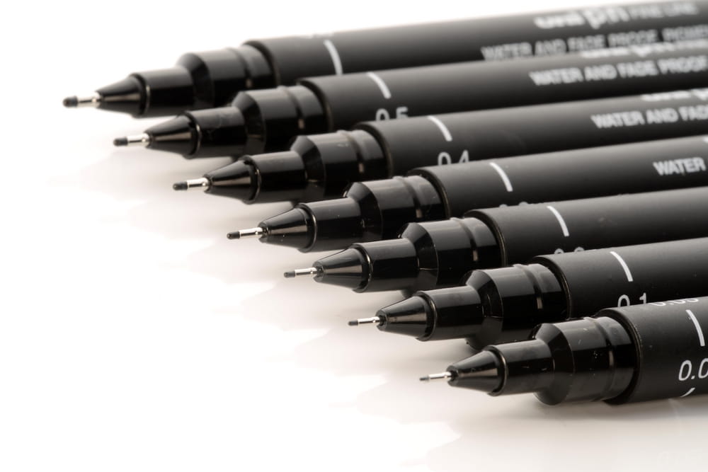W zestawie znajdują się cienkopisy o różnych grubościach końcówek: