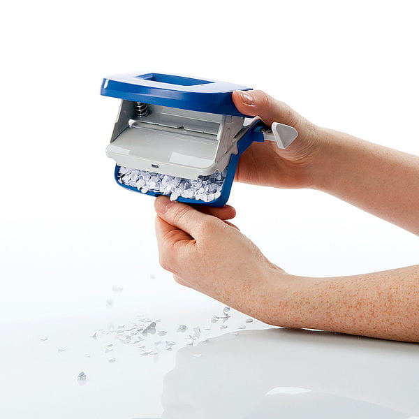 - Antypoślizgowa, otwierana podstawa – łatwe opróżnianie pojemnika na ścinki