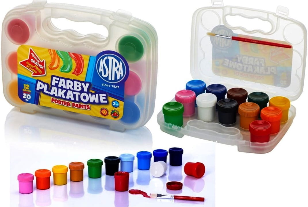 Farby Plakatowe Astra 12 kolorów w Walizce