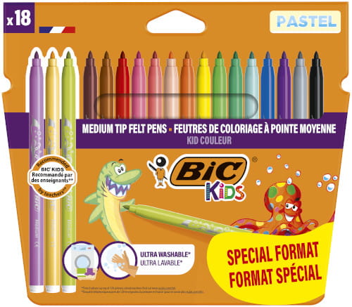 Flamastry BIC Kids Kid Couleur – 15 Żywych + 3 Pastelowe Kolory - bezpieczne i zmywalne