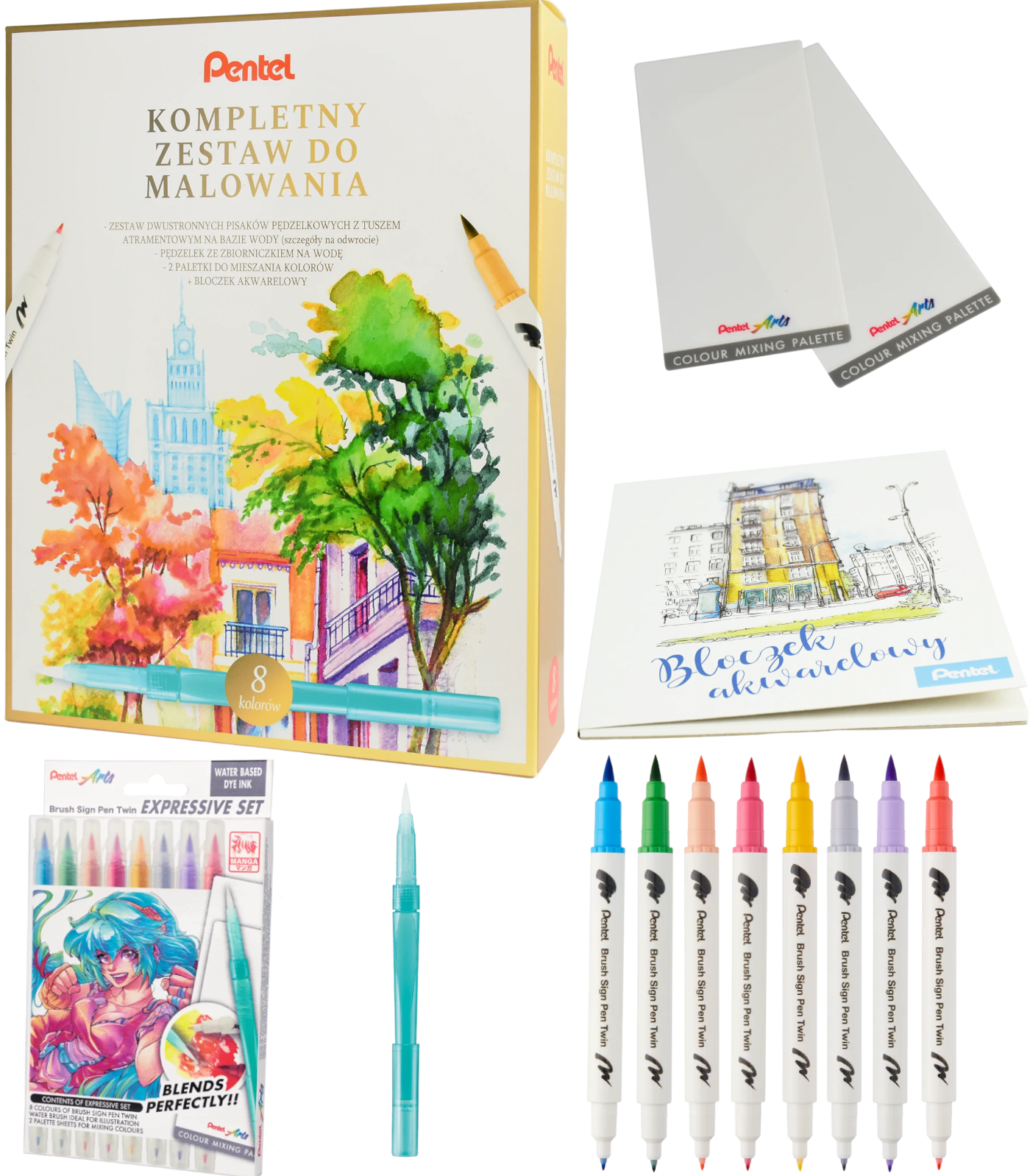 Kompletny Zestaw Do Malowania Manga Brushe Pisaki Pędzelkowe Pentel