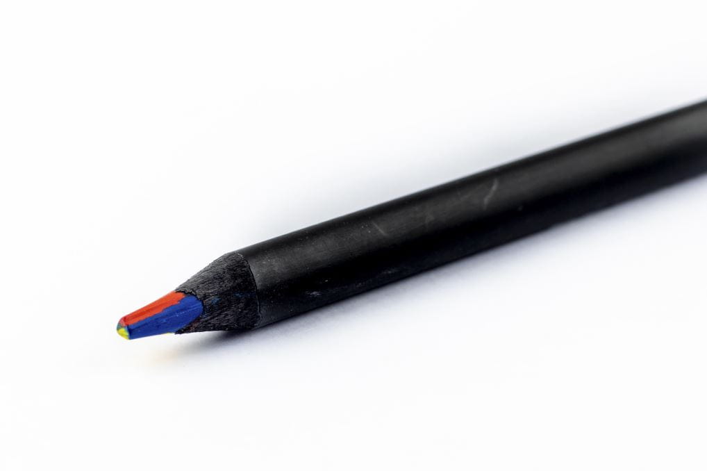 Wielokolorowa kredka o trójkątnym kształcie. Posiada wkład z 4 kolorowymi liniami pisania. Pozwala na tworzenie niezwykłego efektu mieszania się kolorów podczas kreślenia linii. Czarny, matowy korpus wykonany jest z wysokiej jakości drewna.