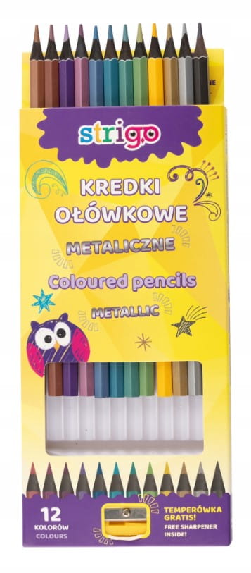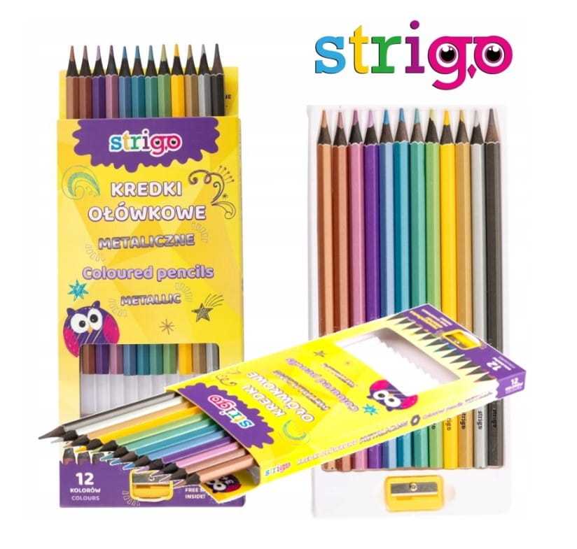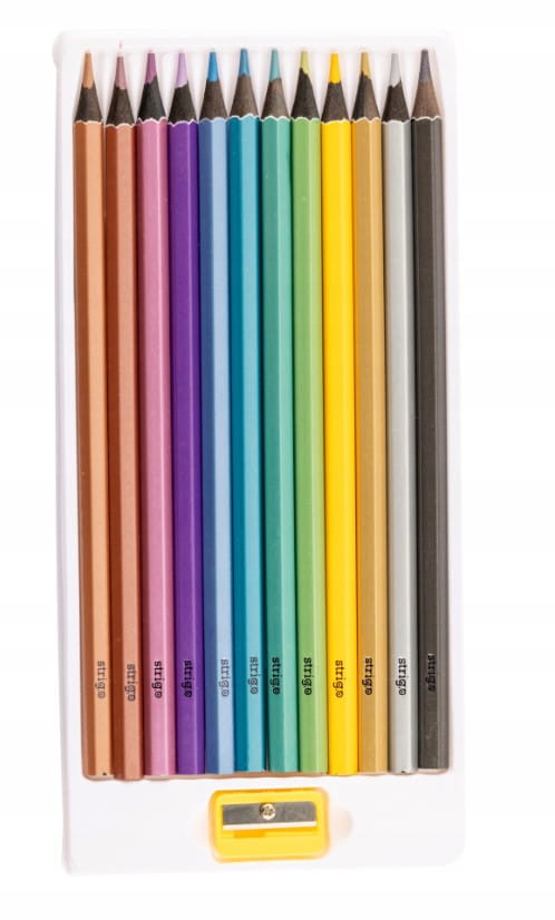 Kredki Ołówkowe Metaliczne 12 Kolorów + Temperówka Strigo
