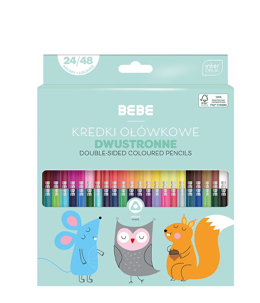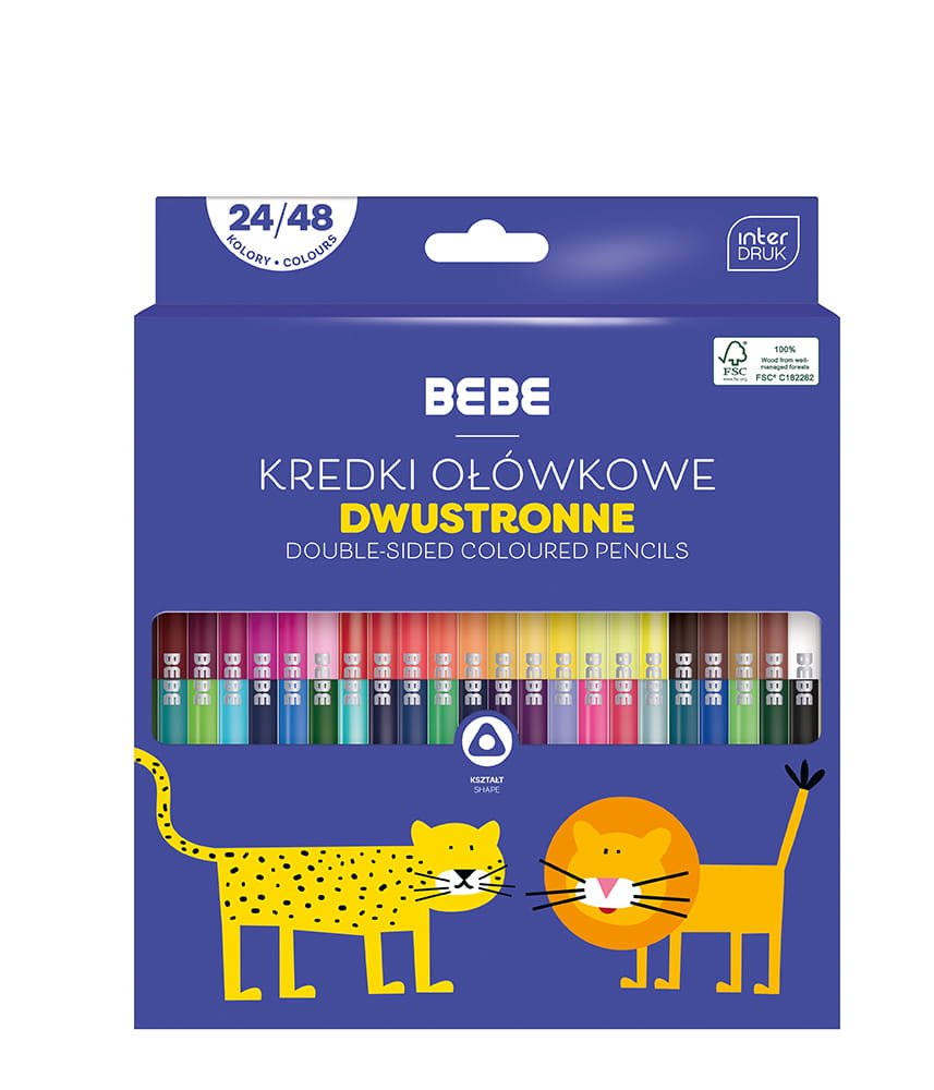 Kredki Ołówkowe Trójkątne Dwustronne 24 Sztuki 48 Kolorów BB Kids Interdruk