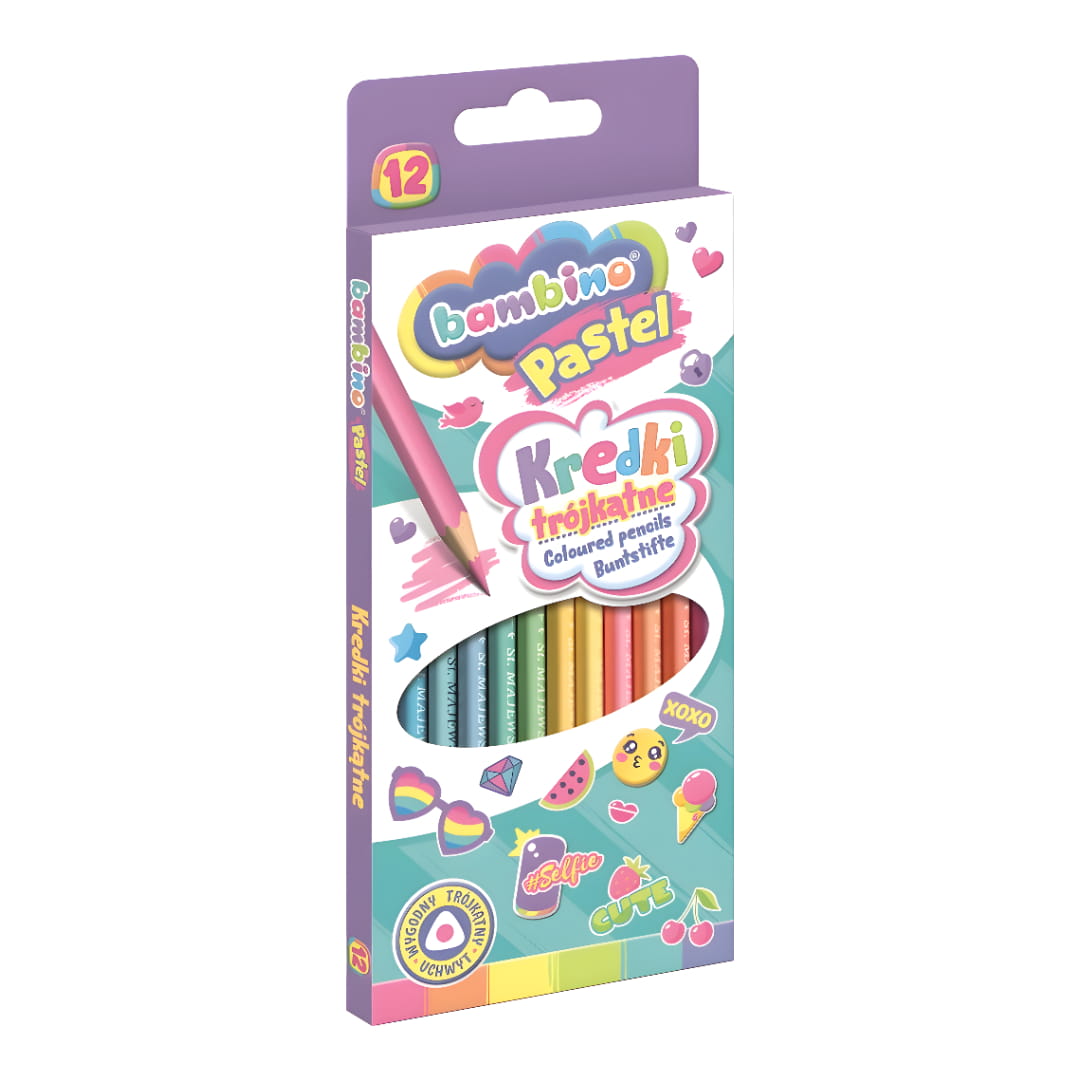 Kredki Szkolne Trójkątne 12 kolorów Pastelowe Bambino