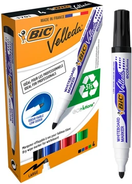 BIC Velleda 1701 ECOlutions – Zestaw 4 Markerów Suchościeralnych