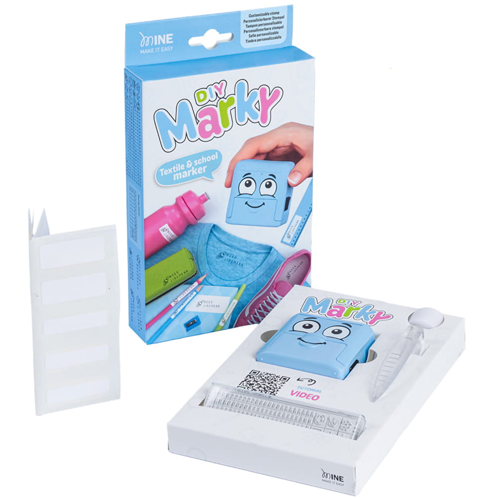 Pieczątka drukarenka do odzieży DIY MARKY to przyjazna pieczątka, którą trwale oznakujesz ubrania oraz szkolne, sportowe i rekreacyjne przedmioty twojego dziecka! Specjalna forma pieczątki umożliwia wielokrotne i różnorodne znakowanie. Z pomocą zestawu wymiennych czcionek zawierających wszystkie litery, znaki i pozytywne grafiki możesz oznakować dowolną przestrzeń według własnego zamysłu.