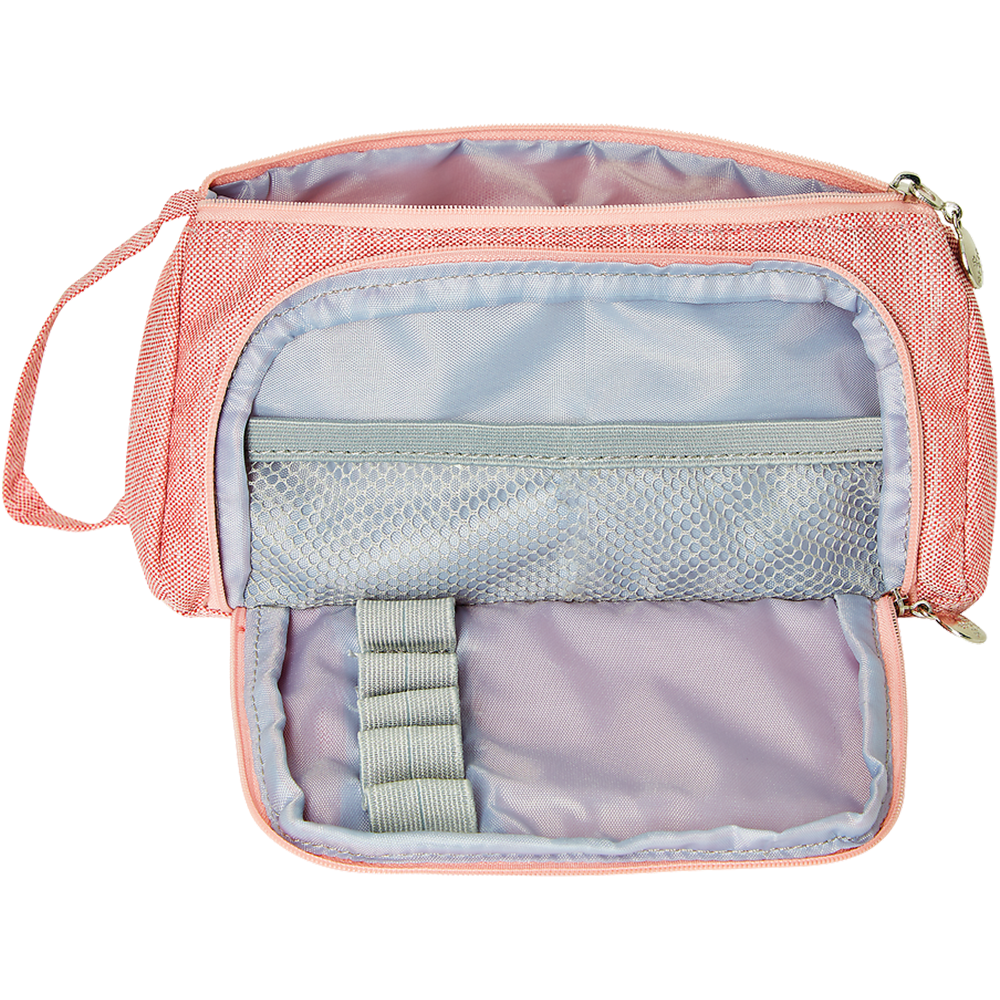 - Piórnik kosmetyczka z 2 komorami, w tym 1 klapa z gumkami i kieszenią siateczkową