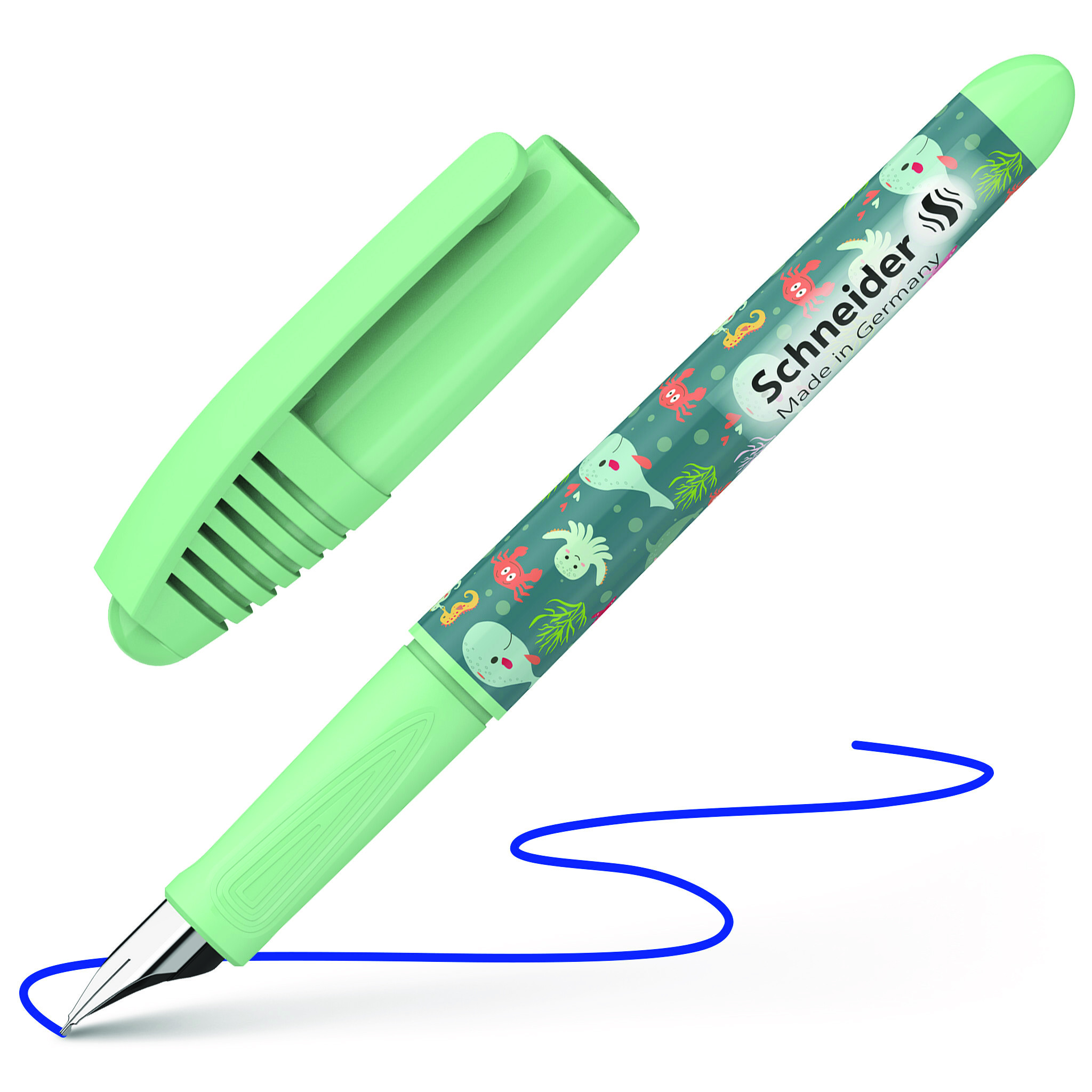 Pióro wieczne niemieckiej marki Schneider Zippi Happy Fish w kolorze jasnozielonym to świetny wybór dla osób, które chcą pisać wygodnie i z przyjemnością – zarówno w szkole, jak i w domu. Wesoły motyw Happy Fish przyciąga wzrok, a stalówka M zapewnia płynne, czytelne linie.