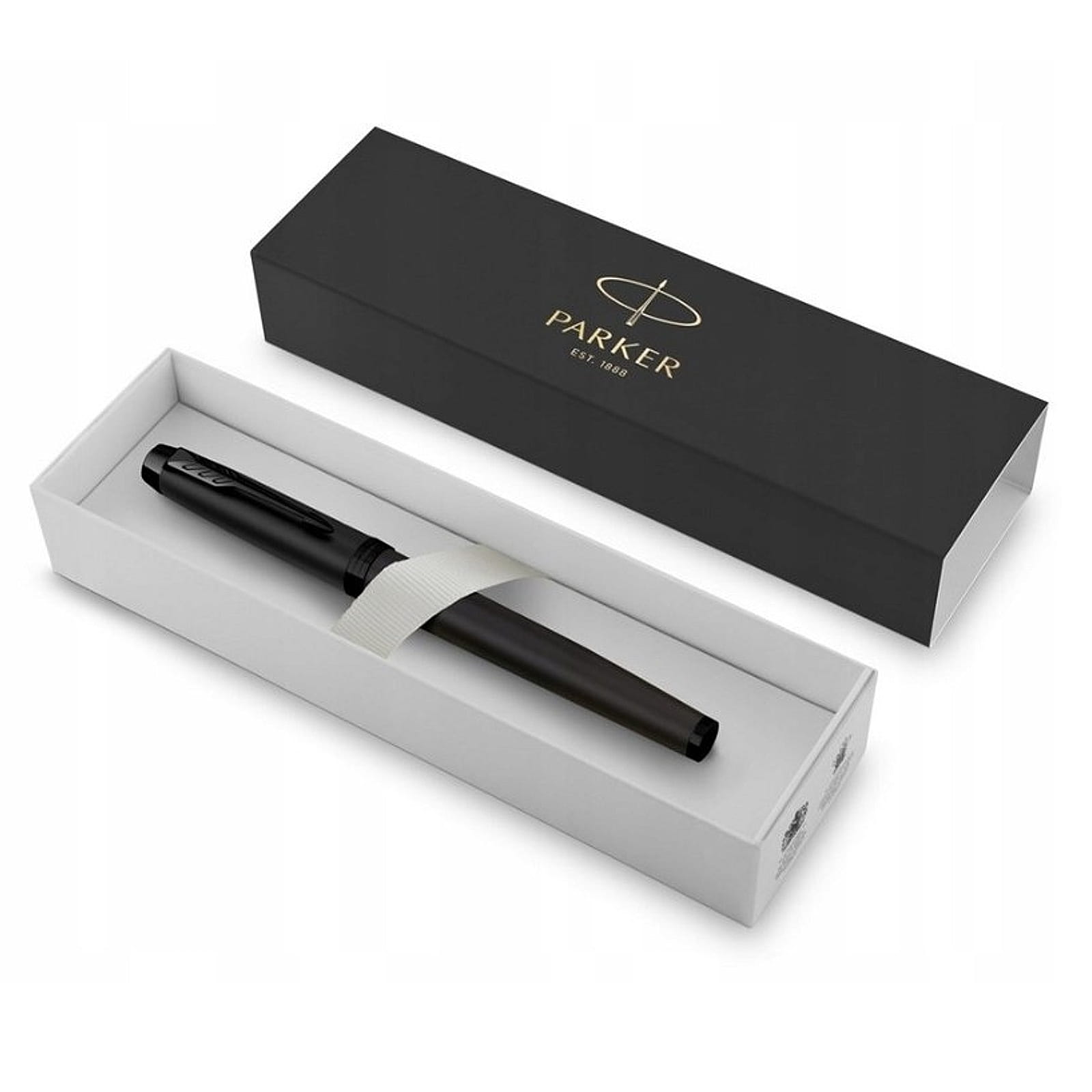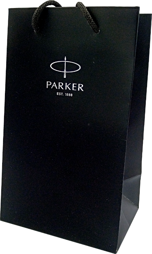 Dołączona zostanie również czarna papierowa torebka prezentowa z tłoczonym , srebrnym logotypem marki Parker.