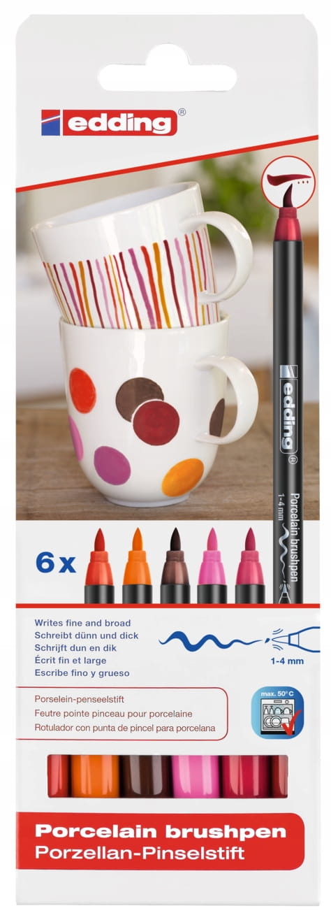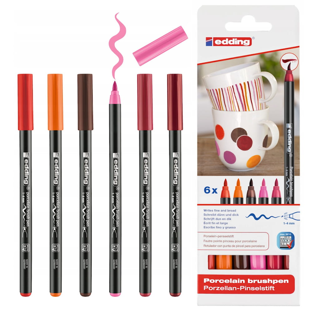 Pisaki Edding Do Ceramiki 1-4mm Z Końcówką Pędzelkową Etui 6 Kolorów Ciepłych