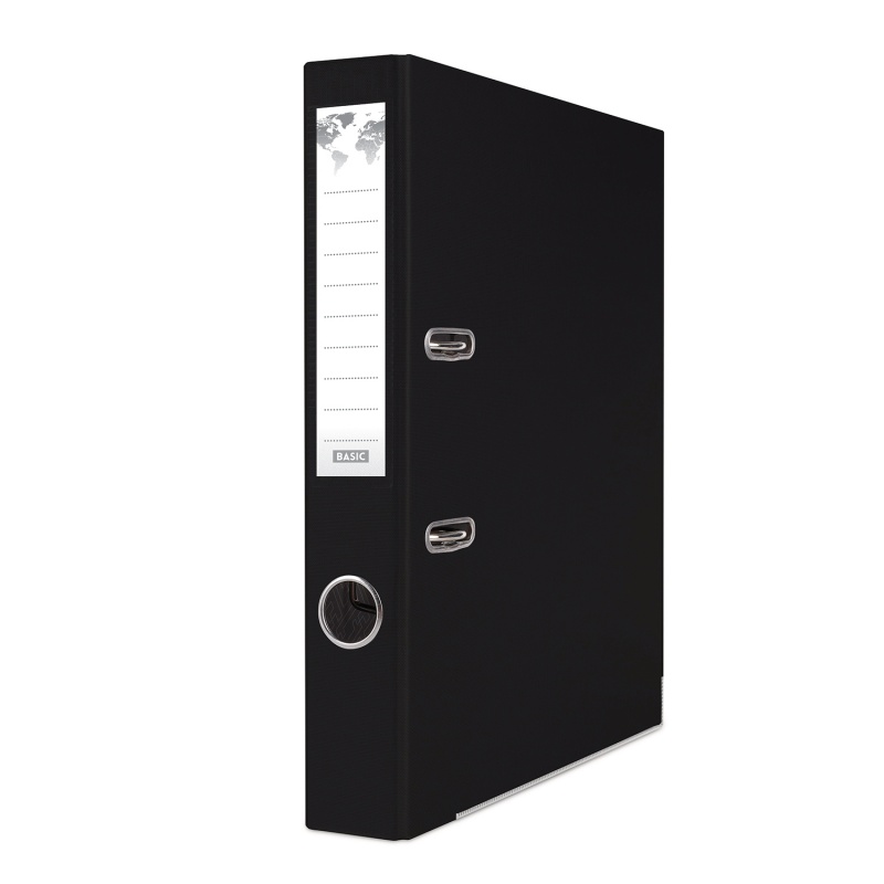 Segregator BASIC-S Z Szyną A4 50mm Czarny Wewnętrzna Wyklejka Otwór Z Boku