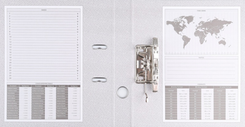 - Wewnętrzna wyklejka z indeksem, tabelą formatów i mapą stref czasowych