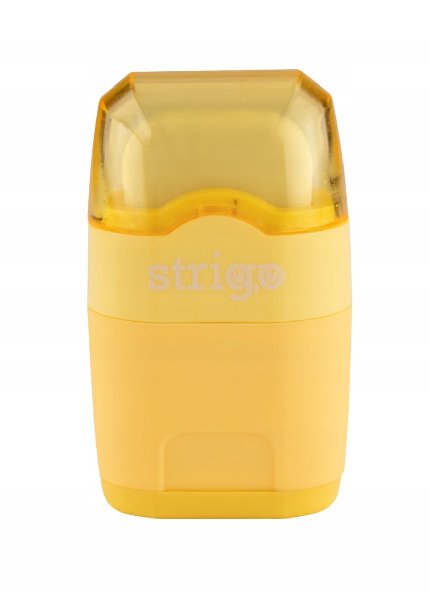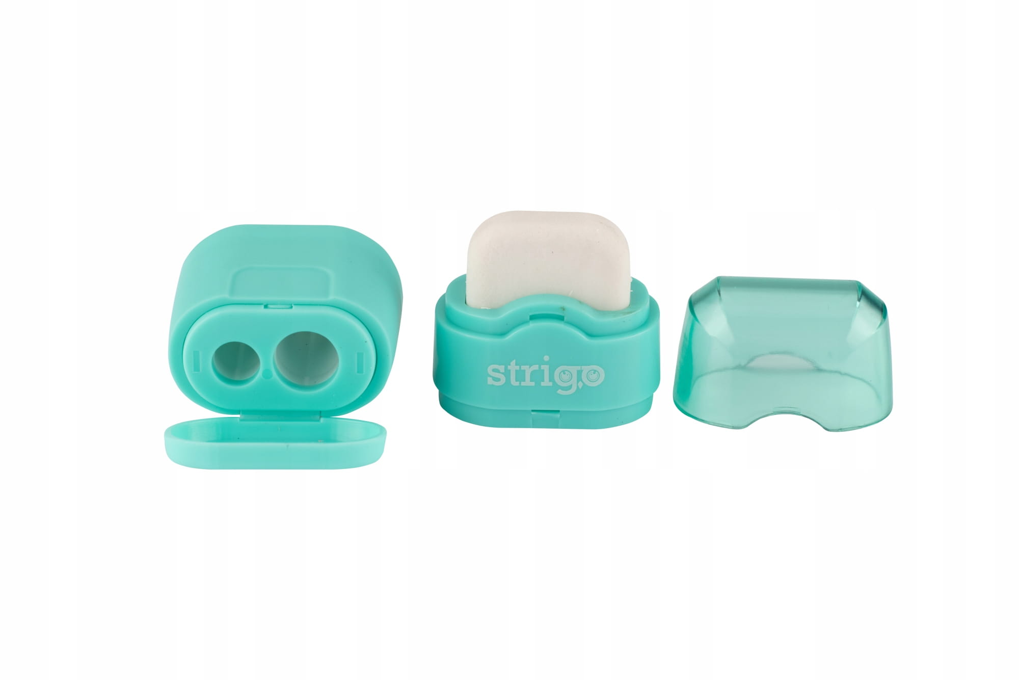 Temperówka Strigo w pastelowych kolorach, posiada dwa ostrza przeznaczone do dwóch wielkości ołówków, gumkę oraz podręczny pojemniki na wiórki. Temperówki Strigo są idealne do zaostrzania ołówków oraz kredek o normalnej oraz dużej średnicy.
