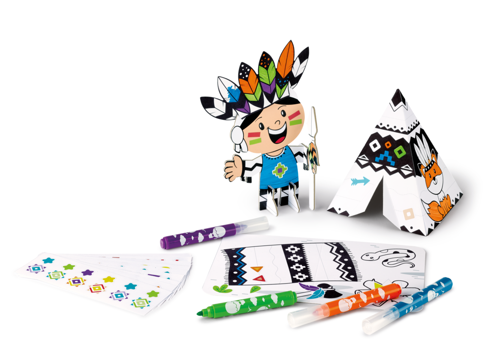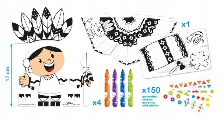 Dzięki Twojej wyobraźni i akcesoriom z zestawu, indiański wódz już zawsze będzie radosny i dumny z przepięknego pióropusza, z którym nie chce się rozstawać i wyjątkowego wigwamu.