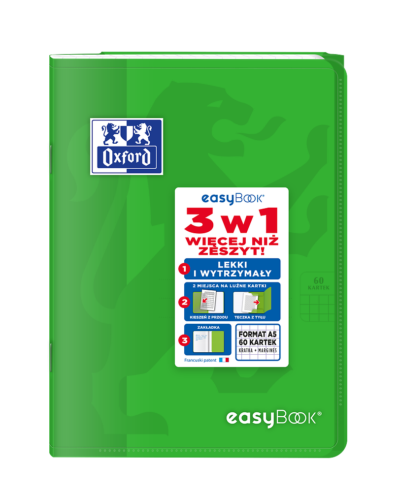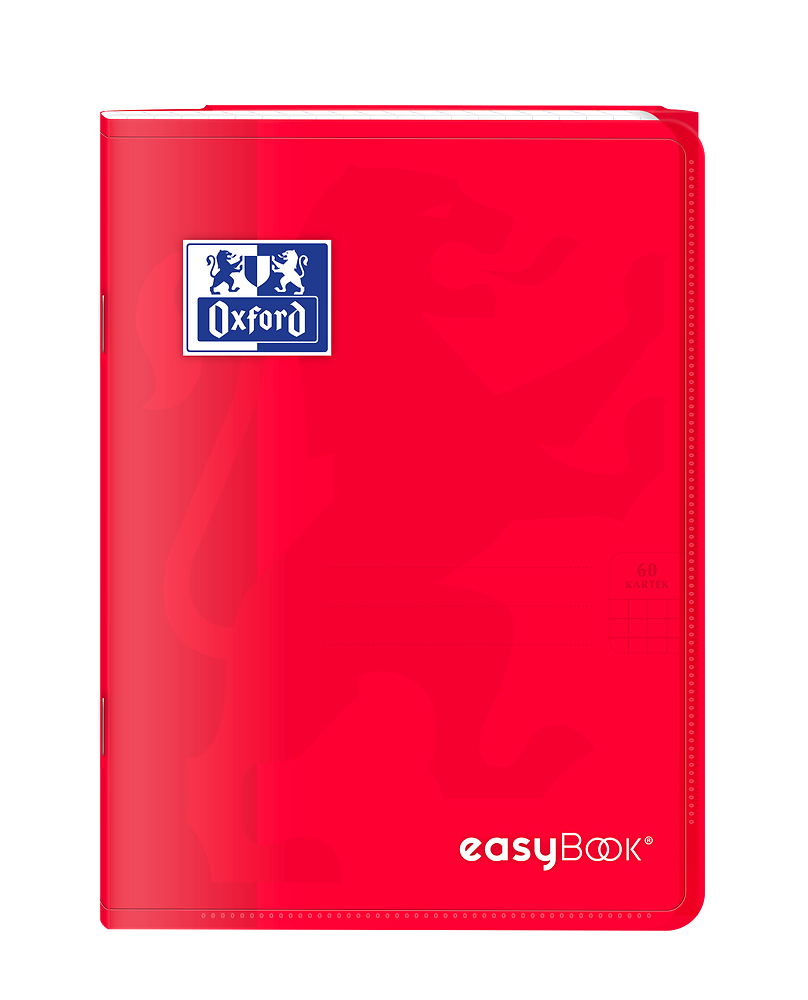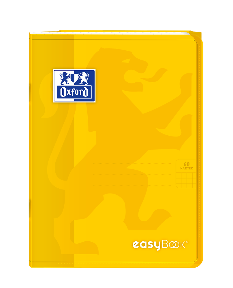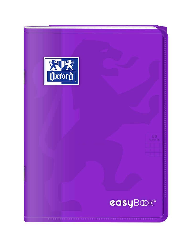 Kolekcja EasyBook to zeszyty z półprzezroczystą, trwałą polipropylenową okładką oraz przedstawionym wizerunkiem lwa. Na przodzie zeszytu znajduje się bardzo praktyczna kieszeń na luźne kartki, natomiast na końcu zeszytu teczka na dokumenty, której skrzydło służy również jako zakładka. Śnieżnobiały i idealnie gładki papier Optik Paper o gramaturze 90g/m2 sprawi, że pisanie w zeszycie będzie przyjemnością.